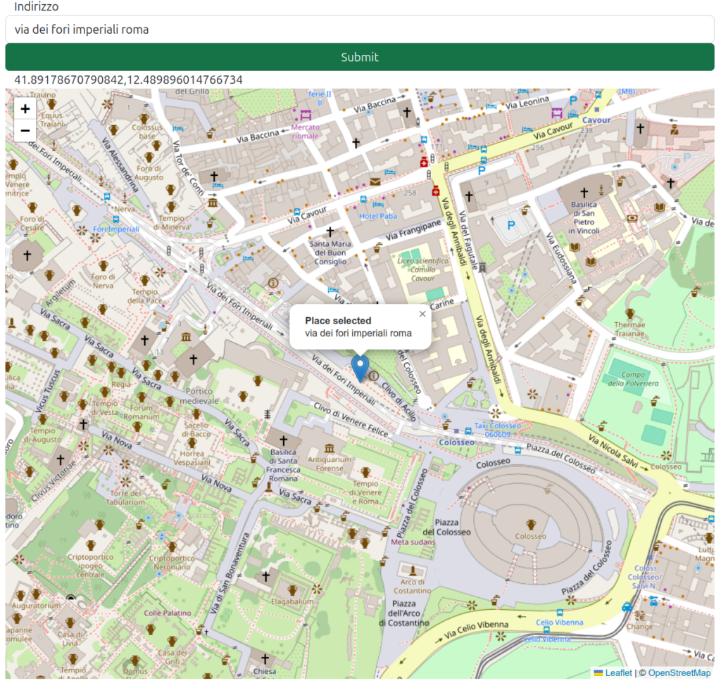 }Si ricorda che è una funzione async, quindi una promise. Inoltre il risultato può contenere più di un indirizzo, per semplicità abbiamo scelto il primo (features[0]).