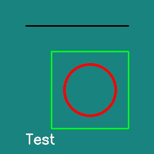 rectangle(canvas, Point(100, 100), Point(250, 250), Scalar(25, 250, 0), 2);Rettangolo (in realtà è un quadrato) verde brillante, sempre di spessore 2, dove i due punti indicano la posizione in alto a sx e in basso a dx.
